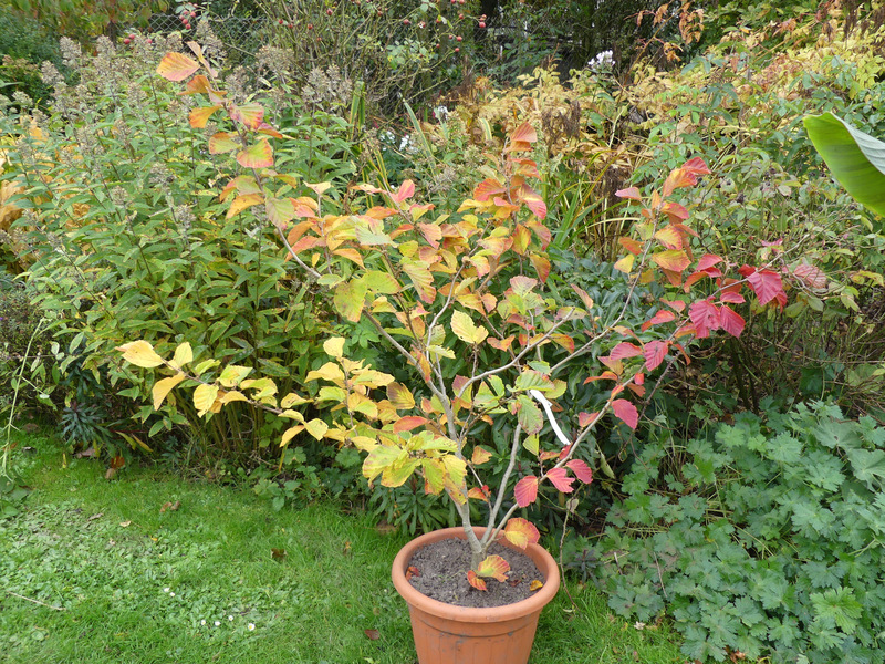 Hier sind bisher die wenigsten Hamamelis in Färbung. 'Birgit' ist noch am weitesten.