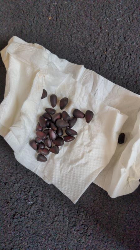 Leider habe ich den Zapfen nicht mehr und keine Samen mehr. Diese waren aber relativ (hell)braun und nicht relativ schwarz wie meine Pinien aus Venedig.