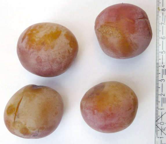 ich habe einen interessanten prunus baum gefunden bei dem ich nicht genau weis was es ist, vielleicht kann jemand helfen. die fruchtfotos wurden vor 1-2 wochen aufgenommen. da lagen schon einige früchte am boden, es war noch viel am baum oben. jetzt hängen auch noch früchte am baum. es ist vielleicht nicht so gut zu erkennen, aber die früchte sind eindeutig zweifärbig. 4x3,5cm und 20-25g. nach reiner zwetschke haben sie nicht geschmeckt, da passen die kerne auch nicht. die kerne haben einen auffälligen doppelhöcker an einer seite. der baum ist relativ groß (5m+), für die größe und das alter ist der stamm aber recht schlank. insgesamt ein eher lockerer aufbau. was könnte das sein?