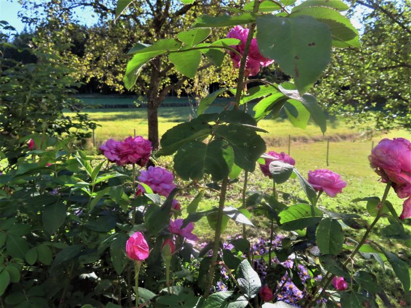 Letzte und vorletzte Woche ging es im Waldviertel stufenweise mit den Frösten: Zuerst erwischten sie die letzten Rosen nur leicht, aber nach den -6°C in der Nacht auf den letzten Sonntag wars vorbei. Ich latsch jetzt mal in Gummistiefeln mit einem Arbeitsbild herein - Comte de Chambord, immer gut für Oktoberbilder: