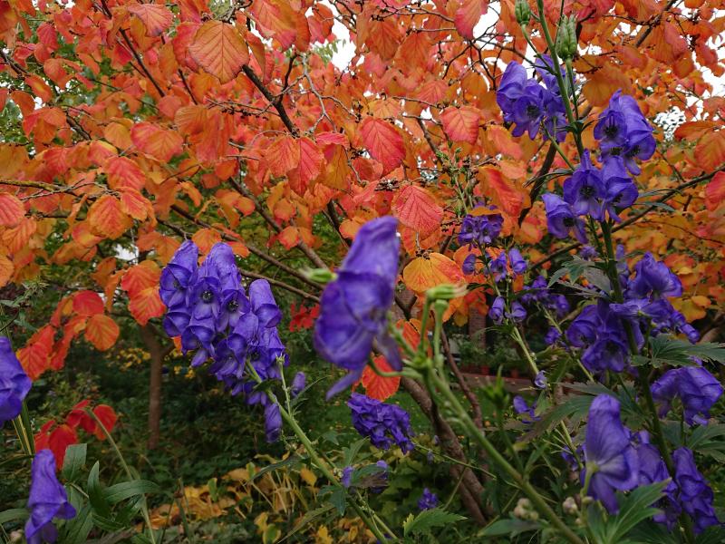 Jetzt blüht der Herbsteisenhut bereits aus den kleinen Seitenrispen und das Blau leuchtet deshalb immer intensiver.
