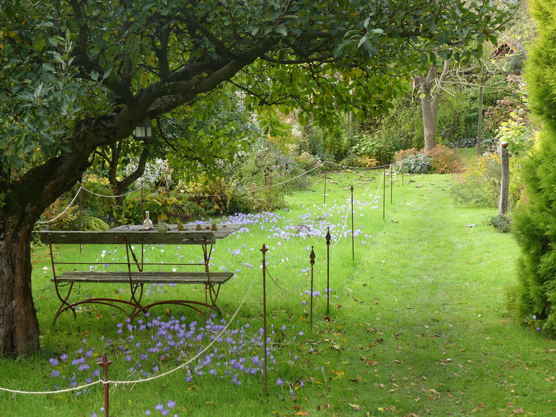 Dialog kürzlich beim Gartenbesuch: "Hast du keine Herbstkrokusse?" - "Hatte ich mal." In grauer Vorzeit hatte ich den Vorgarten und eine zweite Gartenecke kräftig herbstkrokusgezwiebelt, doch nachdem beide Areale gründlich umgewühlt wurden, glaubte ich die Herbstkrokusse verloren.