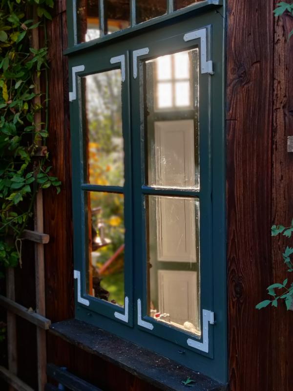 GG hat derweil die Kleberreste auf den Fensterscheiben des Gartenhauses entfernt. Sieht gleich netter aus. :)