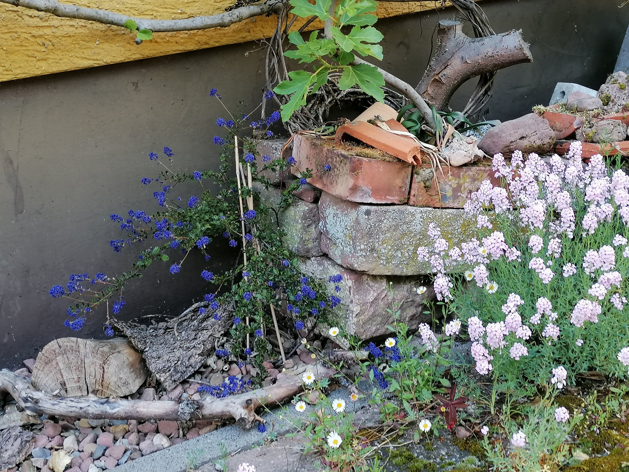 Acontraluz, das ist bei mir die warme Hausseite, Südwest. Allerdings zeitweise durch Nachbars Nussbaum beschattet, ab Nachmittag Vollsonne. Sitzt im Drainagestreifen im Kies, allerdings durch Jahrzehnte mit Sediment eingetragen, sprich zwischen dem Kies ist auch etwas Humus.