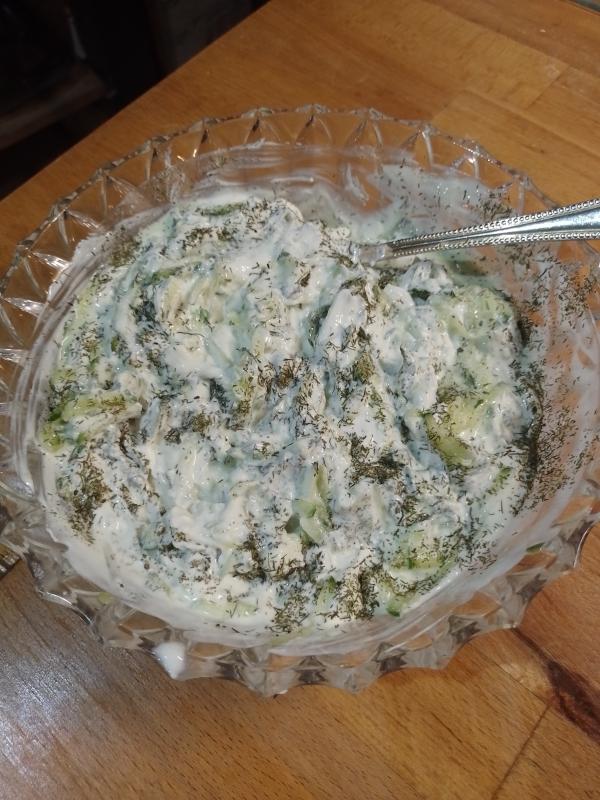 Dazu gibt es eine leckere Joghurt Weisskäse Gurke sosse