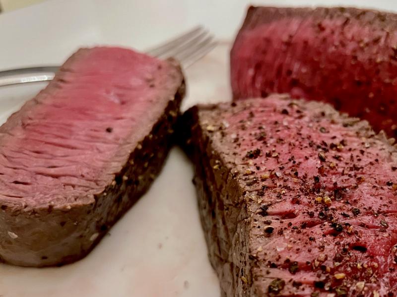 hier gab es nachmitternachtshüftsteak vom biorind. pur. ohne "gesundes" gemüse oder unnötige sättigungsbeilagen. 8)