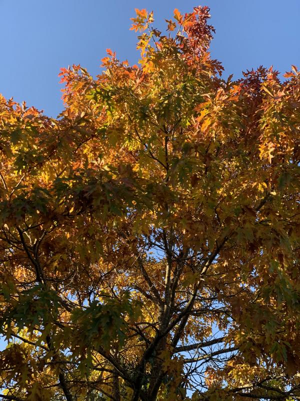 Du brauchst vor allem noch kein Laub zu fegen, bei dem, was alles noch oben ist - das ist auch schon mal stimmungsaufhellend. Ich schaue auch erstmal hoch, bevor ich überbewerte, was unten liegt ;D