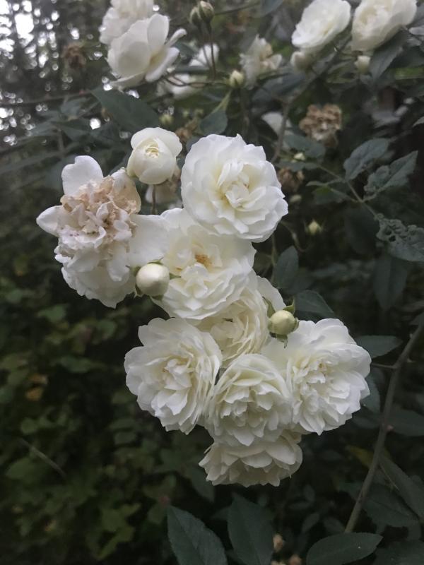 In einem feuchten Klima, wie bei mir, putzen sich fast alle Rosen schlecht und zwischen den weißen Blüten sehen bräunliche Reste schäbig aus. :-\ Leider sind duftende Sorten auch besonders betroffen, es gibt anscheinend einen Zusammenhang zwischen Duft und zarter Konsistenz der Blütenblätter.