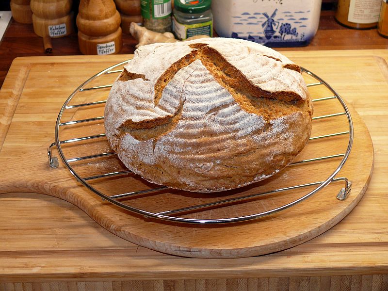 Ich hab das Rezept letztes Jahr schon zweimal ausprobiert, ist einfach und schmeckt gut. Man braucht nur ein erbsgroßes Stück Germ/Hefe (und schmeckt sie anschließend nicht raus). Es gibt aber auch eine Variante mit Sauerteig.