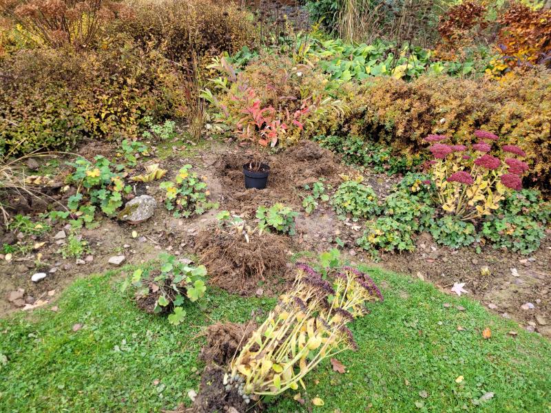 Außerdem wurden einige erst dieses Frühhahr gepflanzte Geranium 'Philippe Vapelle' und eine Fetthenne ausgebuddelt und neu verteilt.