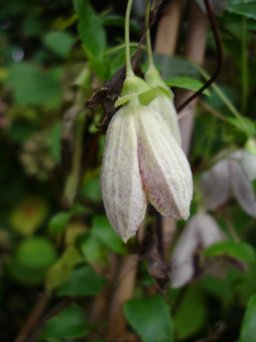 Und dann gleich noch 'n Eintrag:Vor wenigen Wochen fand ich im Pflanzenforum diese Clematis cirrhosa "Freckles", auf die ich anfangs nur aufmerksam wurde, da ich ohne meine Brille meinte lauter dicke bleiche Raupen zu sehen; als ich mich dann mitleidsvoll näherte und genauer guckte, sah ich natürlich, dass es die bleichen,schlapp hängenden Knospen waren.
