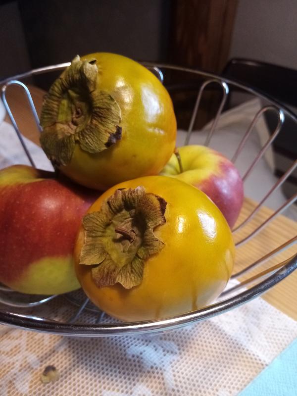 Im Umkreis von 50 m stehen eine weitere Kaki, eine männliche Diospyros virginiana und eine D. lotus, die reich fruchtet.