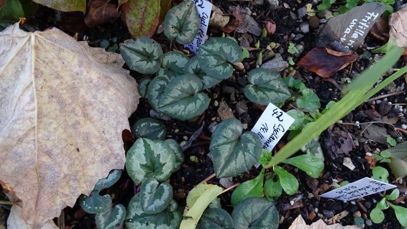 So sehen meine C. confusum aus, sie haben deutlich noch glänzendere Blätter als die C. hederifolium ssp. crassifolium, aber auch unterschiedliche Muster. (Die Pflanzen stammen von RB):