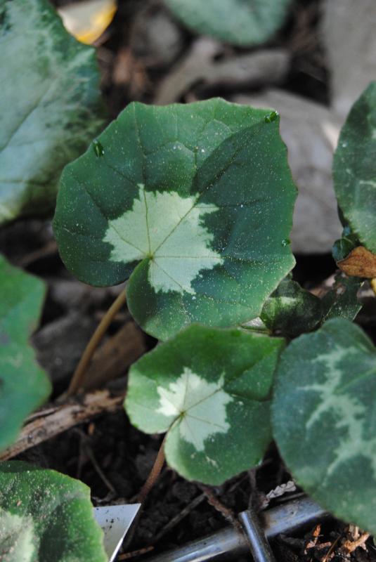 Ein paar Cyclamen pseudibericum zeigen schon ihr Blattwerk.