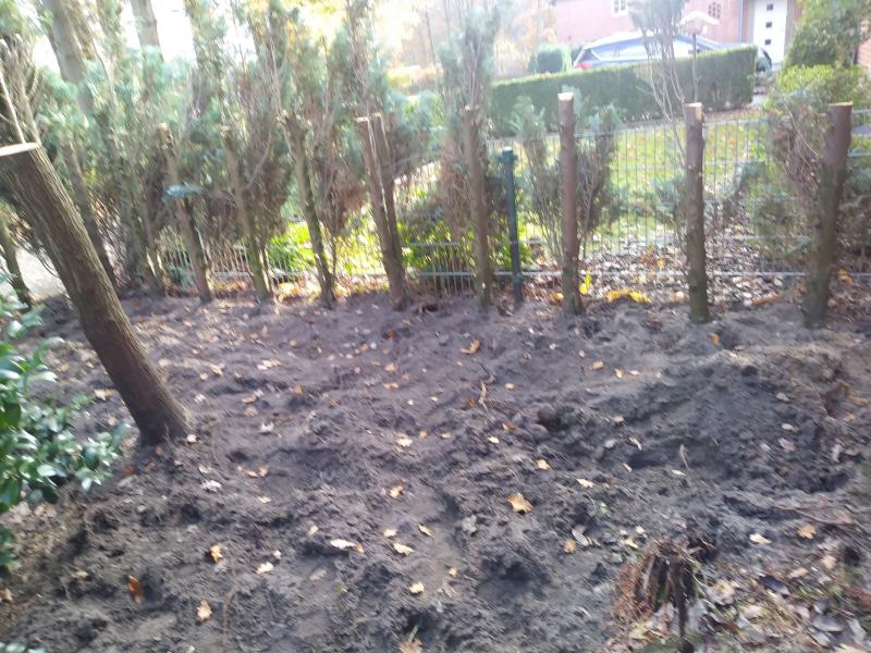 Die Stubben werde ich wohl leider ausgraben müssen weil die so ziemlich genau auf der Grundstücksgrenze stehen gemeinsam mit Nachbars Zaun. Dort ist ein Hügelbeet leider nicht so einfach machbar.