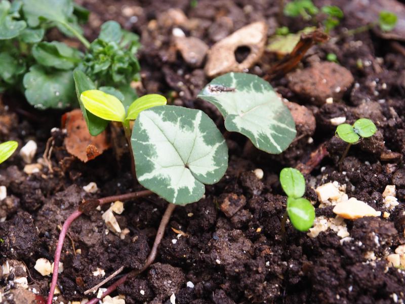 und im Wiesengarten am Kompostplatz habe ich zwei Sämlinge von Cyclamen hederifolium aufgegriffen und verschleppt.