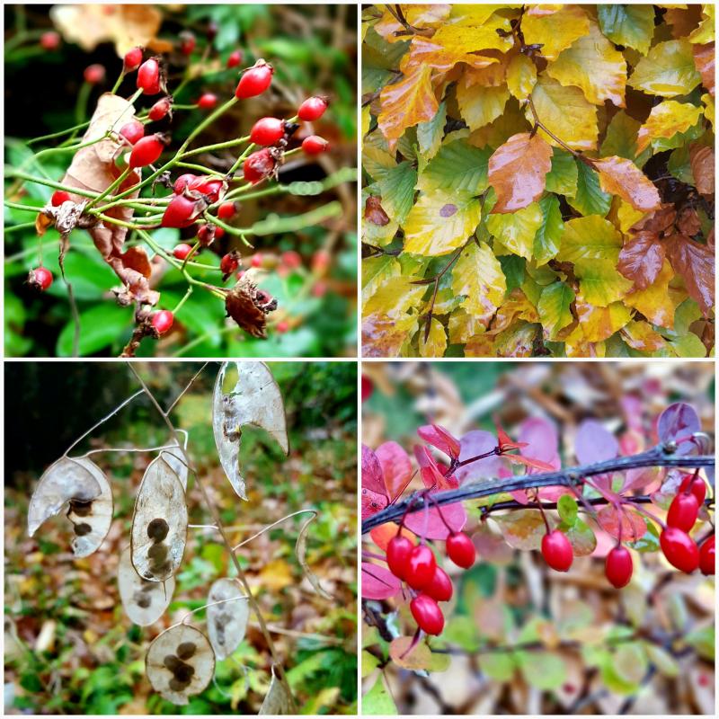Hier leuchtet eine Schüttelkirschpflaume/Myrobalane täglich durch den trüben Herbst, bei dem ich mittags überlege, ob das noch Morgengrauen oder schon wieder Abenddämmerung ist ...