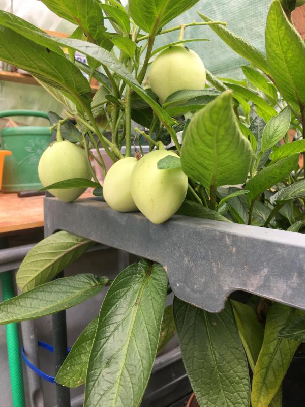 Ich bin mir auch noch nicht ganz sicher wie lange sie bleiben ;) Die Früchte die ich vorab mal aus dem Handel probiert hatte waren ziemlich langweilig aber hatten eine Geschmacksnote bei der ich mir dachte dass das wohl wenn die wirklich direkt an der Pflanze voll ausreifen unter optimalen Bedingungen wohl schon ziemlich lecker werden könnte. Das war mir einen Versuch wert. Also bleiben sie erstmal, zumindest einen besseren Sommer bekommen sie schon noch als Chance. Nur das Ungeziefer mag ich nicht ins Winterquartier importieren.