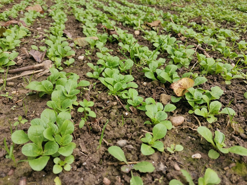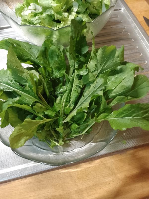 Außerdem 5 rote Bete Tonda die Chioggia und 2 Chinakohl, 1 Endivie, Blattsenf (Asia-Salat) und Hirschhornwegerich.