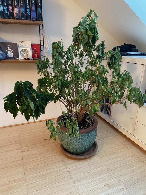 ich habe eine Frage - mein Weihnachtsstern (ist 5 jahre alt) - ist seit einer woche ziemlich "kaputt". ER steht unverändert an der selben stelle. Dass ich ihn habe austrocknen lasse oder übergossen habe glaube ich eigentlich nicht (grundsätzlich normales giessverhalten, wie er das von mir seit jahren gewohnt ist), aber er wird immer schlimmer. der topf hat große löcher und ist unten mit diesem leichtgranulat gefüllt, grundsätzlich sollte er eigentlich nicht "ertrinken". Als es anfing mit den hängenden blättern (vor 6 tagen) habe ich ihn natürlich gut gegossen, da die erde da recht trocken war. aber es wird nicht besser, die blätter sterben alle. einzig ein kleiner bereich (links unten) schaut noch gut aus, aber seit heute morgen wird das auch schlimmer (die fotos sind heute und vor 2 tagen aufgenommen worden). das einzige was gewesen sein kann: vor 2 wochen habe ich meine fenster in der wohnung offen gelassen, da hat er sicher zug bekommen - vielleicht war es das (wir haben hier ja momentan eher <10grad).
