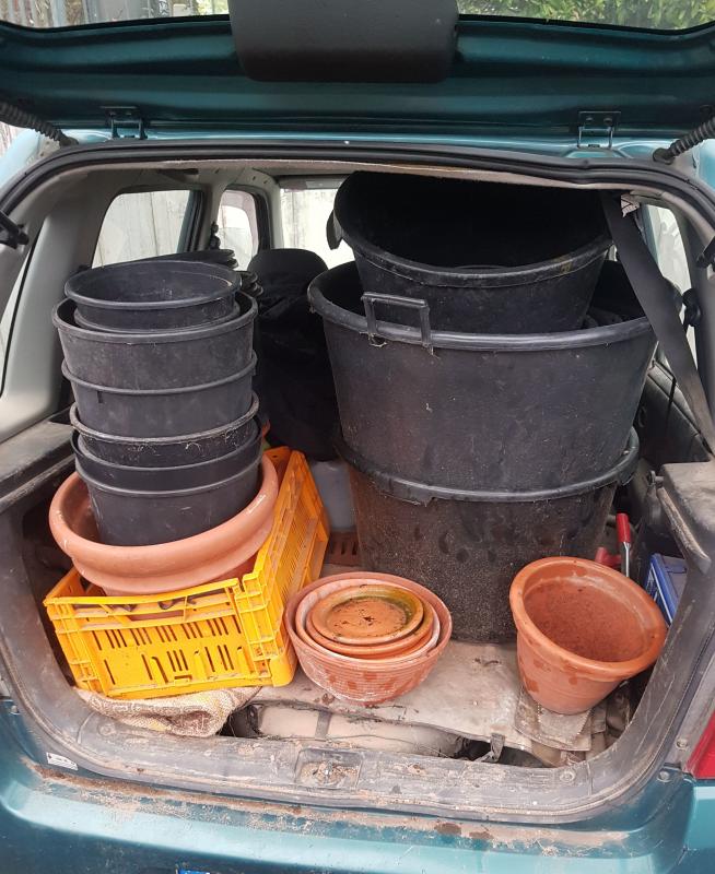 dafür bekam ich einen Kofferraum voller schwarzer Pflanzkübel und Tontöpfe und Untersetzer. Nichts kann mich glücklicher machen! ;) ;D