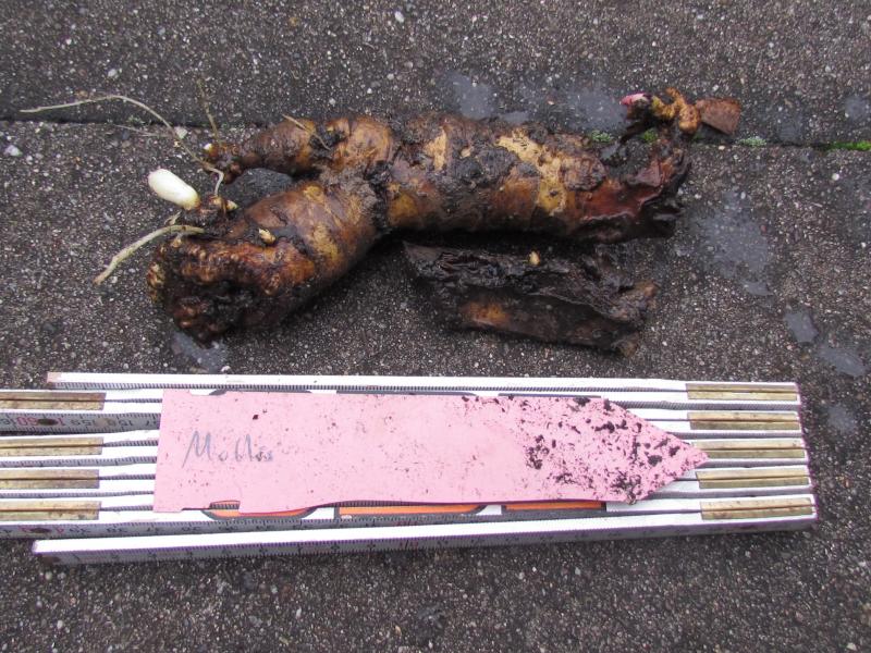 Die habe ich dann alle ausgeschnitten, um das Wurzelstockstück zum neu Wachsen anzuregen, ein kleiner Nebenversuch.