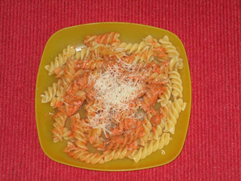 Hier gab es gestern den Rest vom Sonntag und heute Nudeln mit Kräuter-Tomaten-Soße.