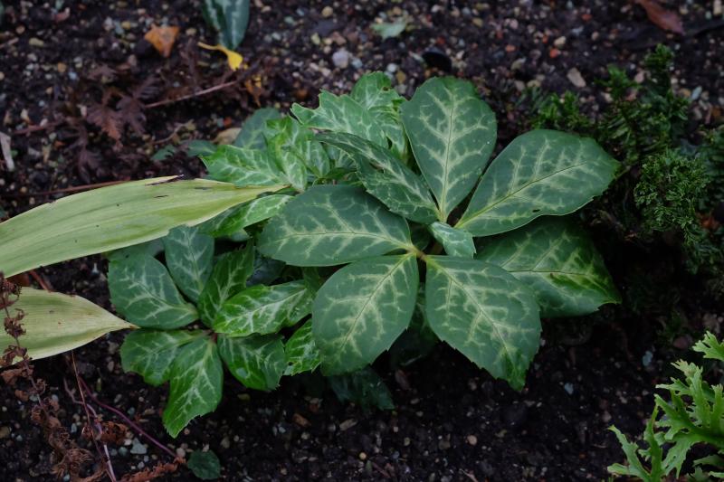 Ich denke eher, eine Hybride mit H. niger. Reine Helleborus argutifolius hat hier helleres, stärker gezähntes Laub.