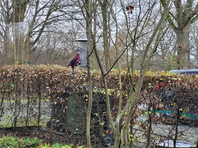 Wir haben versucht ihn anzulocken, aber so zahm ist er nicht. Er scheint irgendwo ausgebüchst zu sein und genießt seine Freiheit.