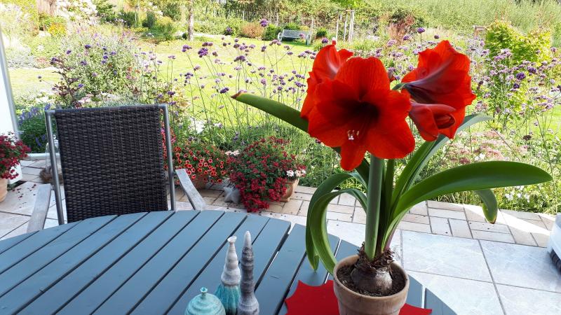 Seitdem habe ich meine Ziebeln nicht mehr weggeworfen, im Sommer im Freien untergestellt, im Herbst neu getopft, dann 6 bis 8 Wochen trocken und kühl auf der Fensterbank ruhen lassen. Erst bei Austrieb wieder regelmäßig gießen und wärmer stellen. Sie kommen nun schon das 2 Jahr ohne zu großen Aufwand wieder zur Blüte.