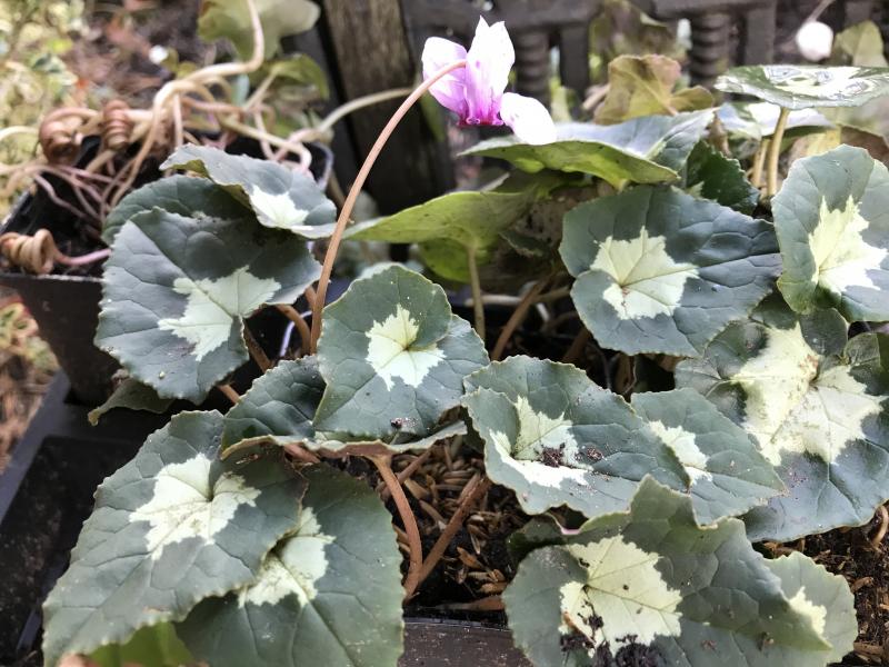 Ich pflanze ja gerade meinen Vorgarten neu. In jedes Pflanzloch kommen noch Schneeglöckchen, Krokusse, Corydalis usw. mit an den Rand, in die Mitte die Cyclamen. Von meinen alten blühen noch einige. Zwei neue blühen auch noch