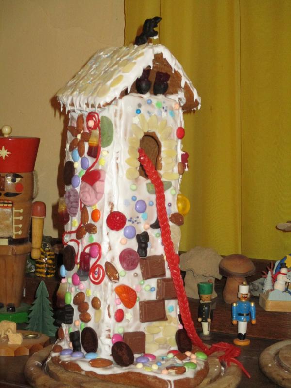 Ja. Nach einem ziemlich tauglichen Rezept von einem Blog, den es offensichtlich nicht mehr gibt :-\. Falls jmd Interesse hat, schreibe ich das Rezept gerne in diesen Faden. Vorteil ist, dass der Teig relativ weich ist, sich also gut ausrollen lässt. Frisch aus dem Ofen kann man noch schneiden und auch biegen (hab mal geöffnete Fensterflügel in die Hexenhauswände fabriziert), beim Abkühlen wird der Pfefferkuchen fest, aber nicht steinhart. Diesmal hatte ich zwei 10tklässler zur Hilfe :D. Ausrollen, schneiden, heile aufs Blech kriegen, backen, rausnehmen, mit Puderzucker&Eiweiß zusammenkleben -> hat Spaß gemacht.