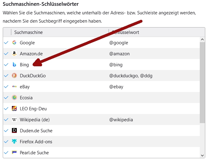 Re: Bing aus Liste der Suchmaschinen bei FireFox entfernen