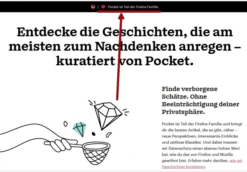 und wenn Du den Screen noch etwas runterscrollst, gibt es noch eine interessante Einstellung, nämlich "empfohlen von Pocket" ich weiß nicht was Pocket empfiehlt, ich habe das verboten.