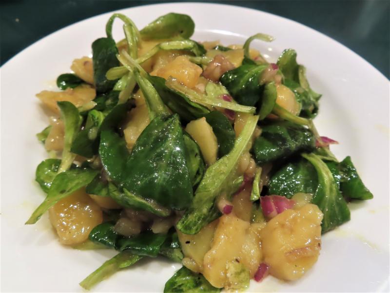 Ach so, hier gab es gebackenen Karpfen und Erdäpflvogerlsalat. Der hat jetzt Saison ;)