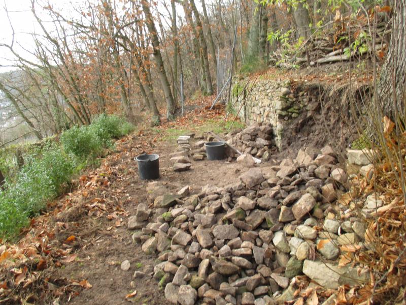 Im Garten habe ich die letzten Wochen damit verbracht bei einer Trockenmauer zwei Teilstücke wieder aufzubauen.