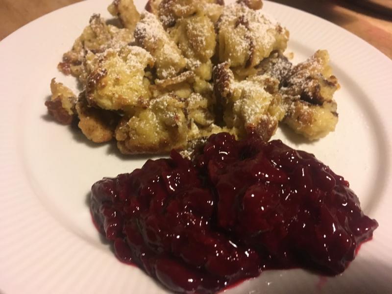 Etwas später dann noch Kaiserschmarrn mit Weichselröster. Die Weichseln aus eigener Ernte :)