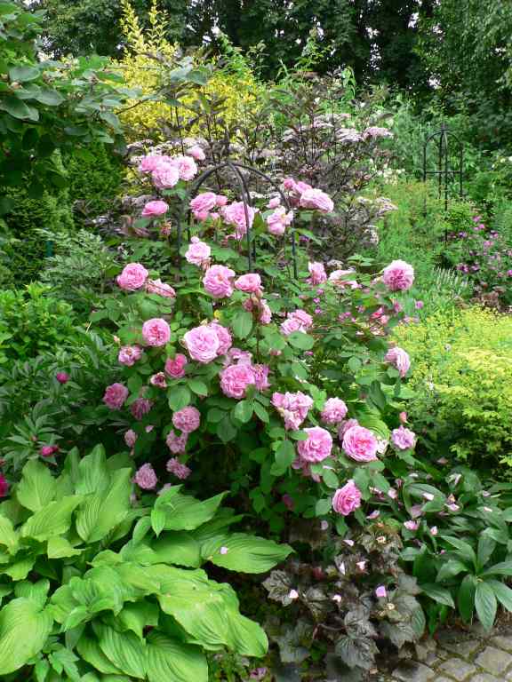 Schade um Deine schönen Rosen! Es sieht aber immer noch schön aus!Ich stelle jedes Jahr auf's Neue fest, dass rosa Rosen einfach toll zum Holunder 'Black Beauty' passen!Und bedaure fast, dass meine 'Gertrude Jekyll' soweit "weit" (ist ja relativ...) weg steht. Aber von der Terrasse aus gesehen, stehen beide hintereinander und sind einfach schön (nur muß man sich den "lauten" Goldliguster wegdenken).Hier ein Update von diesem Jahr: