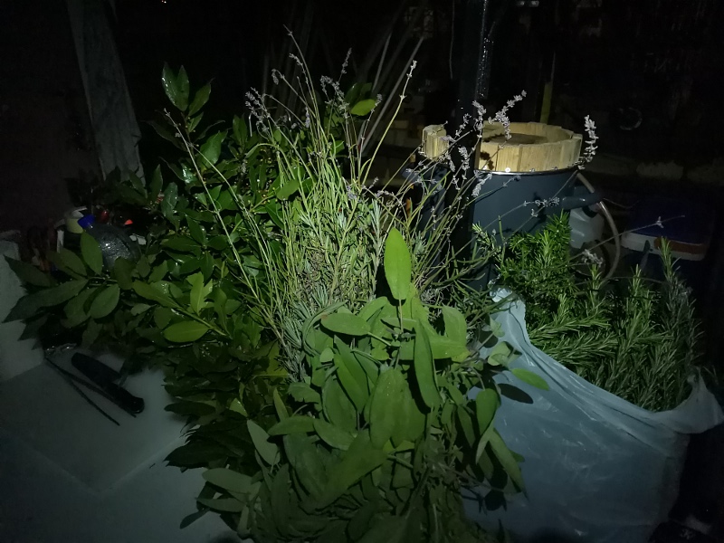 Rosmarin, Lorbeer, Salbei und der letzte blühende Lavendel. Schnittlauch und Co.