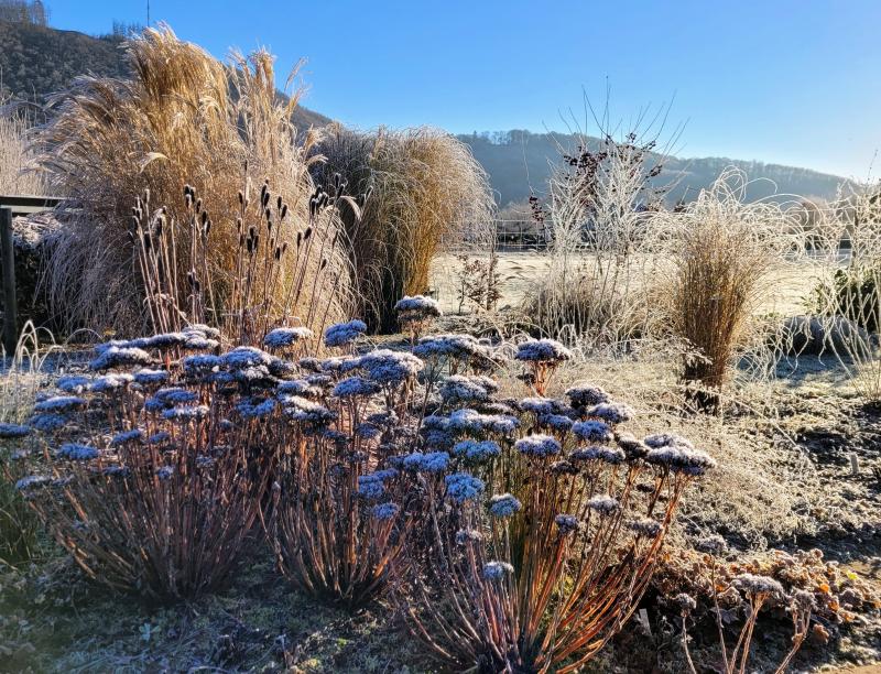 Wunder-wunderschön! :D Vor allem die Ausblicke ganz früh am Morgen (noch ohne Sonne) gefallen mir, wirklich herrlich, wenn der ganze Garten von Raureif überzuckert ist, was für ein zauberhaftes (vor-)weihnachtliches Geschenk!