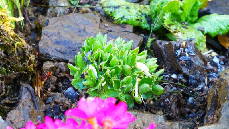 Im Herbst hatte ich befürchtet das sie eingeht denn ich hatte gelesen das sie wintergrün sei. Da ich auch Axel ein paar Pflanzen gegeben hatte war mir seine Einschätzung wichtig denn seine zeigten noch keine braunen Stellen. Er hatte aber eine Info gefunden die dieses Primelchen als nicht wintergrün beschrieb. Und jetzt treibt sie zu meiner Freude wieder aus. Bestimmt etwas früh aber damit muss sie klar kommen.