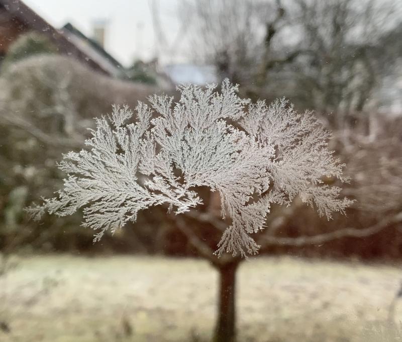 Heute gab es nur eine kleine Eisblume am Fenster...