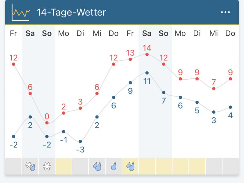 In Wien/Umgebung gibts morgen noch die letzten leichten Minusgrade und dann nur noch Plusgrade bis 4.1., FALLS Wetter-Online richtig liegt mit der 14 Tagesprognose.
