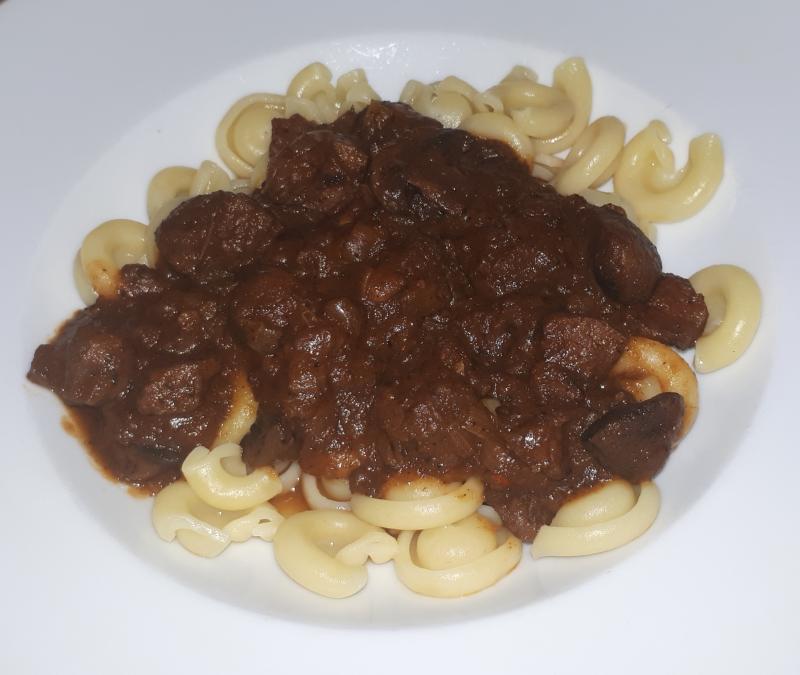 Reste vom " Gulasch", für GG mit den restlichen Klößen, für mich mit Trulli, Mausohrsalat ;D
