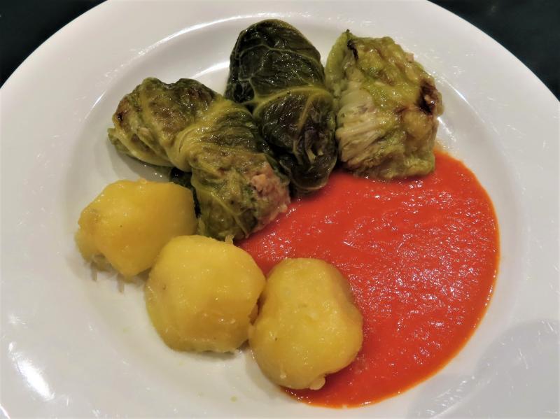 Und heute gab es Kohl-/Wirsingrouladen mit frischer Paprikasauce und Kartoffeln. Das macht den düsteren Tag bunter :D