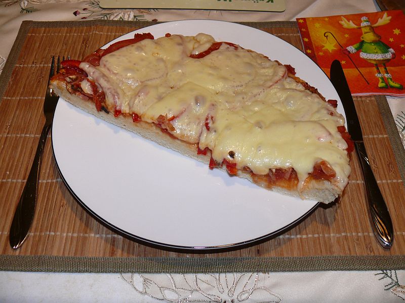 Diese Pizza wiegt genau 1 kg nach dem Backen und hat heute nur einen Belag: