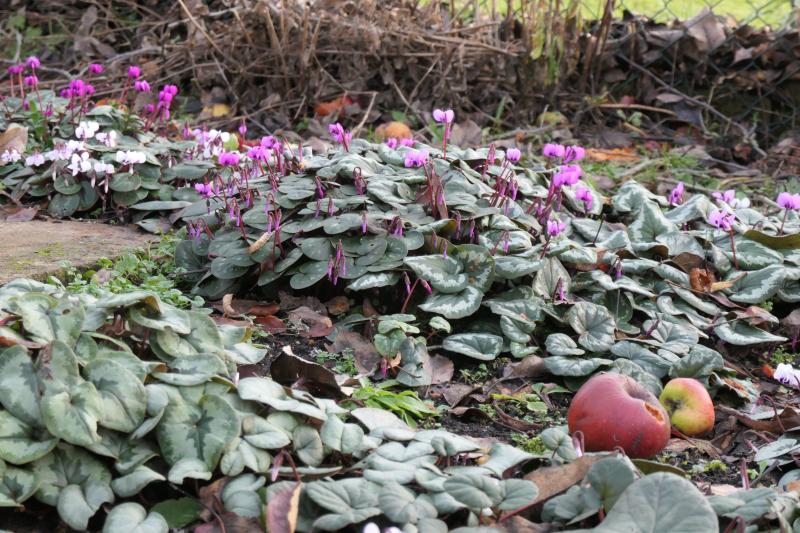 Heute habe ich bei zwei der frisch gesetzten Cyclamen von APO insgesamt 5 bis 6 pinkfarbene Knospen auf hohen Stielen entdeckt. Ich war bei der Entdeckung restlos begeistert... hoffentlich nicht auch die Schnecken oder Mäuse... :-\