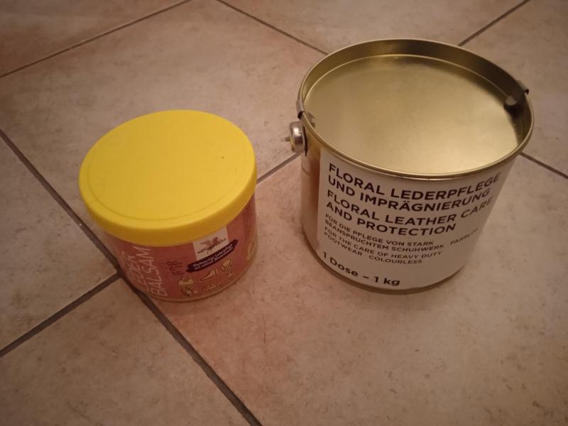 Habe in den letzten Tagen auch meine Arbeitshandschuhe gereinigt. Mit Kernseife geht das sehr gut. Nach 2 Tagen waren die wieder trocken und heute konnte ich wieder einfetten. Zuerst habe ich dünn Bienenwachs Lederpflege aufgetragen und einziehen lassen,danach Bundeswehr Lederpflege mit Silikon. Nun lasse ich das einem Tag einziehen und dann mit einer weichen Bürste polieren bzw. Noch mal einreiben. Bei den Arbeitsschuhen mache ich es ähnlich nur ohne Kernseife,nur mit Wasser reinigen. Und zum Schluss mit Imprägnierspray ( gibt nun auch welches von Imprägnol ohne PFC) einsprühen.