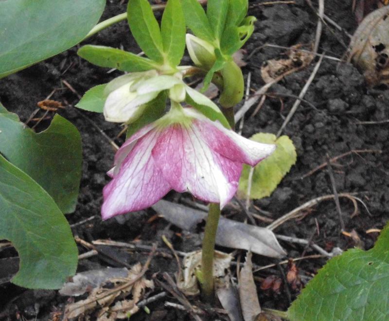 Nachdem ich euren Tipps nach die meisten Blätter meiner namenlosen Helleborus entfernt habe, hat sie endlich angefangen zu blühen! :D