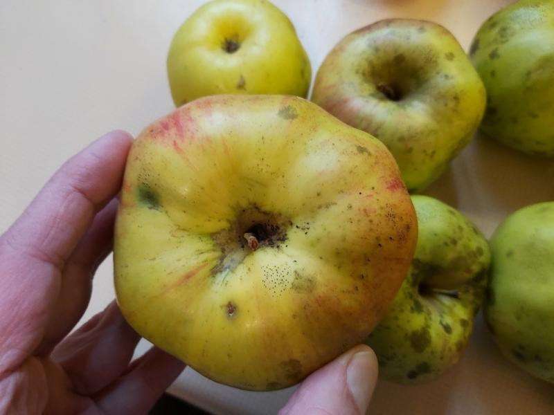 Ach so, was noch wichtig ist. Es ist ein sehr später Apfel, Ernte im November. Kann auch sein, dass sie noch gelagert werden müssen, bis sie ihren Geschmack entfalten.